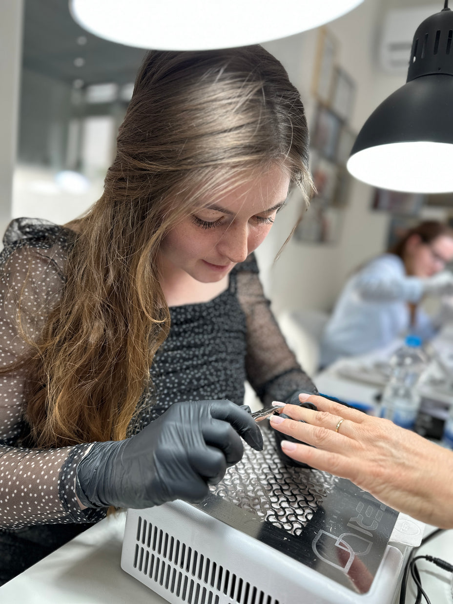 Poleg tega vam nudimo stalno strokovno podporo skozi vse leto – za vsa vprašanja, nasvete in pomoč pri vsakodnevnem delu v salonu. Pri nas po tečaju nikoli niste prepuščeni sami sebi.